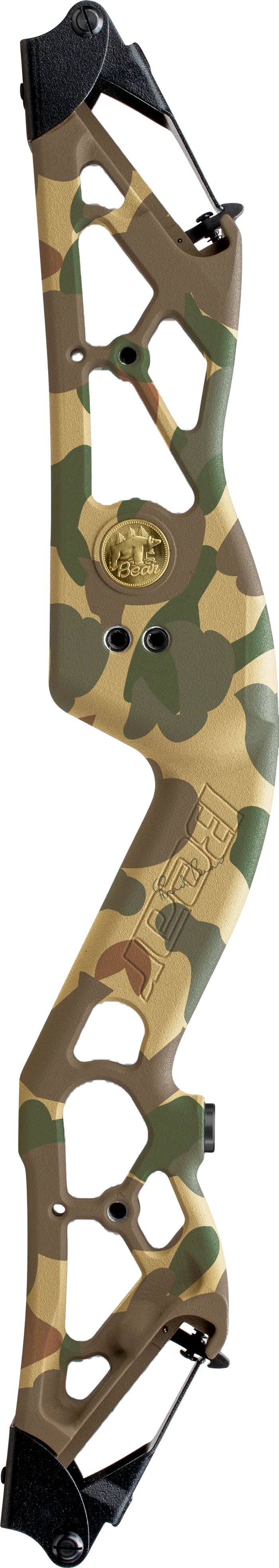 The Fred Eichler Signature Series Take Down features Fred Bear's patented Take Down latch system which accepts Bear's #1, #2, and #3 Take Down limbs -