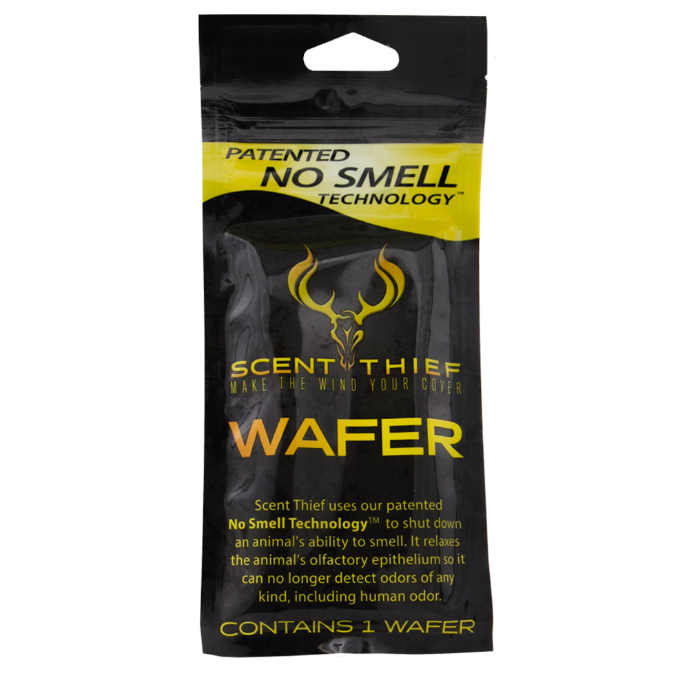 The Scent Thief Wafer is the next evolution in No Smell Technology™. Use the Wafer in the field by hanging it in a tree, up-wind of where your treestand is located. The wind will help carry the Wafer scent and create a “No Smell Area” around you. Use alongside the other hunting scent blocker products to eliminate an animals ability to smell you.