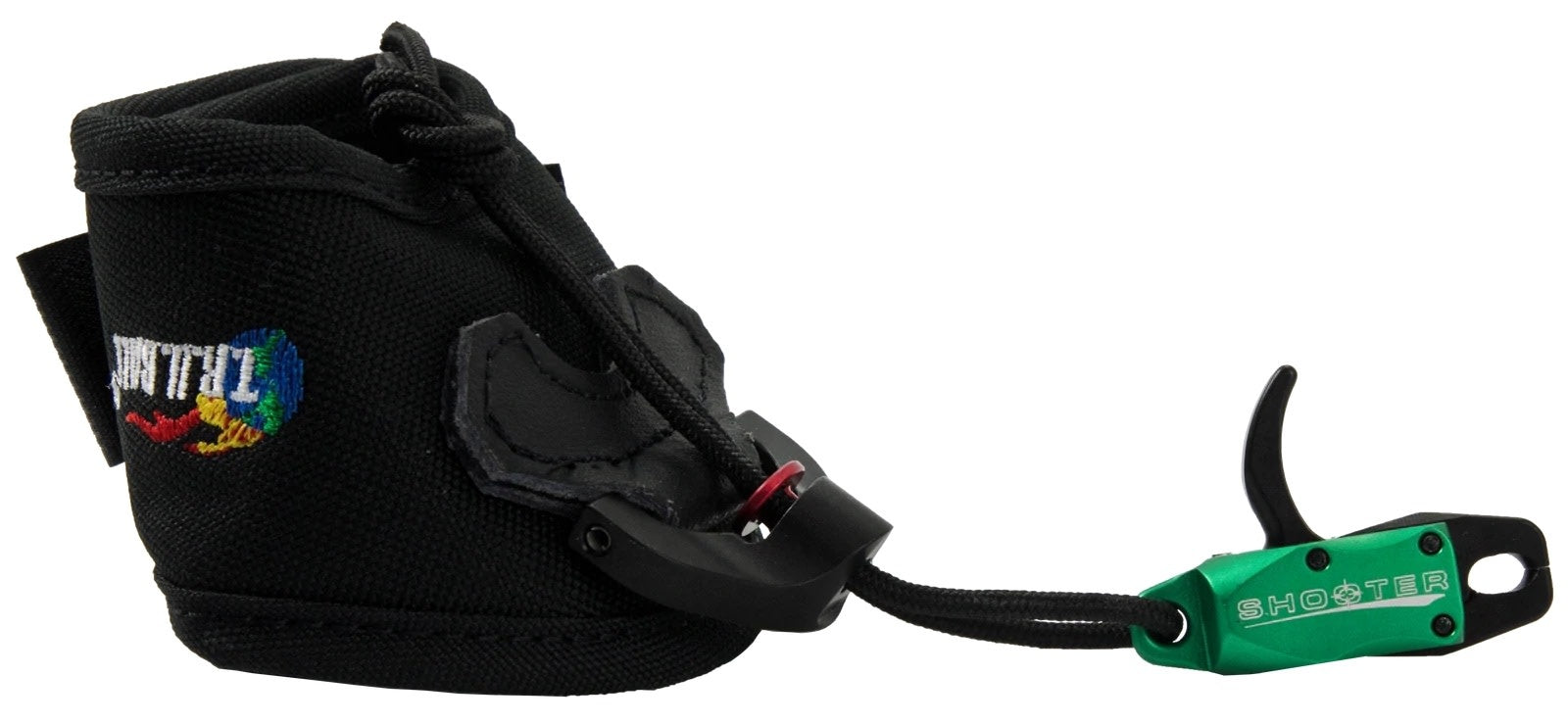 Designed specifically with the youth in mind, the new SHOOTER series features four bright color combinations of Blue, Red, Green, and Purple. All with black jaws and trigger. Pull trigger to open fully-independent standard caliper jaws, and let up the trigger to close. The SHOOTER has a new quick lock connection system to provide easy adjustment for any anchor point. the rope style connection between the head and strap allows for less torque and great accuracy. While also allowing the length of the release to be extremely short to fit smaller hands. Tucks away easy into sleeve when not in use. available in junior or large with choice of black Velcro® strap or black leather buckle strap.